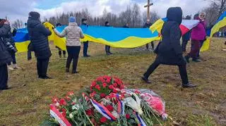 - Пам’ятник знесли (…), але ми щороку приходимо сюди на день пам’яті Черняховського, - сказав Андреєв, якого супроводжувала група з близько 20 поляків. У них також були квіти (зокрема поодинокі червоні гвоздики), деякі тримали плакатики із зображенням Христа Царя.