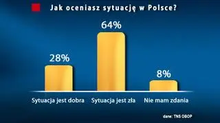 64 proc. badanych uważa, że sprawy w kraju idą w złym kierunku. Kryzys dostrzega zdecydowana większość społeczeństwa - ponad 70 proc.