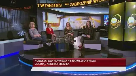 Warunki, w jakich karę więzienia odbywa Anders Breivik, nie są nieludzkim i poniżającym traktowaniem - orzekł w środę sąd apelacyjny w mieście Skien, zmieniając wcześniejszy wyrok, korzystny dla sprawcy ataków terrorystycznych z 22 lipca 2011 roku. Na ten temat w "Debacie Kobiet" w TVN24 BiS dyskutowały: radca prawny Katarzyna Piekarska, prawnik Monika Wiśniewska i psycholog Monika Dreger.
