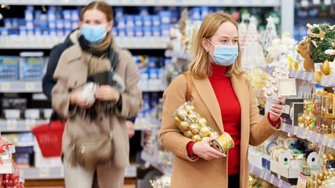 We wszystkich placówkach handlowych obowiązuje wymóg noszenia maseczek ochronnych zasłaniających usta i nos. Sklepy mają obowiązek udostępniać klientom podczas zakupów rękawiczki jednorazowe i płyny do dezynfekcji dłoni. Od 1 grudnia w placówkach handlowych obowiązuje nowy limit osób (jedna osoba na 15 m kw.).