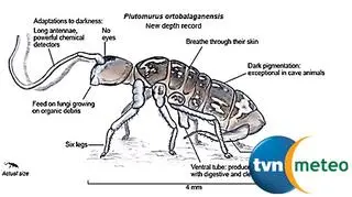 Żyje w całkowitych ciemnościach, prawie 2 km pod ziemią i nie ma oczu. Plutomurus ortobalaganensis to nieznany dotąd gatunek z rzędu skoczogonków - prymitywnych, beskrzydłych stawonogów. Odnaleziono go w abchaskiej jaskini - informuje "Terrestrial Arthropod Reviews".