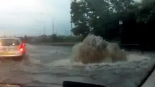 Do podobnej sytuacji doszło też w środę w Warszawie. Ci, którzy w czasie burzy jechali Trasą Łazienkowską w stronę Pragi mogli zaobserwować wielką fontannę na środku ulicy.
