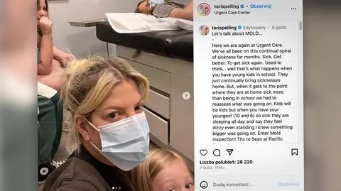 Tori Spelling w środę opublikowała na Instagramie post, w którym poinformowała, że wraz z dziećmi musiała udać się do szpitala. Wskazała, że od kilku miesięcy członkowie jej rodziny ciągle byli chorzy. "Myślałam, że tak jest, gdy małe dzieci chodzą do szkoły, że ciągle przynoszą do domu wirusy" - napisała. "Jednak gdy doszliśmy do momentu, w którym częściej przebywały chore w domu niż w szkole, musieliśmy ponownie ocenić, co się dzieje" - podkreśliła.
