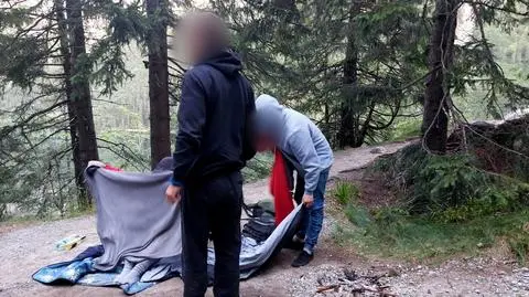 "Biwakowanie pod gołym niebem w Tatrzańskim Parku Narodowym jest bezwzględnie zabronione" - przypominają w komunikacie władze parku, publikując zdjęcie trzech mężczyzn, zbierających swoje rzeczy z ziemi. Obok nich widać ślady po wypalonym ognisku.