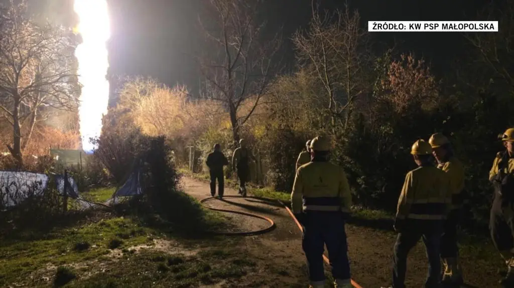 Kapitan Hubert Ciepły, rzecznik małopolskiej straży pożarnej, powiedział przed godziną 7 w TVN24, że do wycieku gazu doszło na terenie ogródków działkowych, w "niezamieszkałej strefie". - Zgłoszenie otrzymaliśmy tuż po godzinie 4 nad ranem. Doszło (w tym miejscu - red.) do rozszczelnienia instalacji gazowej średniego ciśnienia - przekazał. Jak dodał, słup ognia miał w kulminacyjnym momencie około 20 metrów.