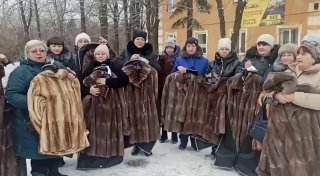 Вдовам ликвидированных чмобиков из бантустанов "ЛДНР" в качестве компенсации раздали шубы Судя по видео, они довольны 🤷♂️