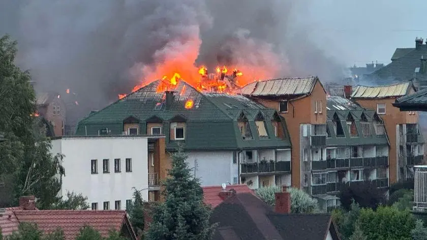 - Na miejscu działa 26 zastępów PSP i OSP, łącznie 60 strażaków, w tym 6 drabin mechanicznych, z których prowadzona jest akcja gaśnicza. Mieszkańcy ewakuowali się przed przybyciem straży pożarnej. Na tę chwilę brak informacji o osobach poszkodowanych, pożar nie został jeszcze opanowany - powiedział Kierzkowski.