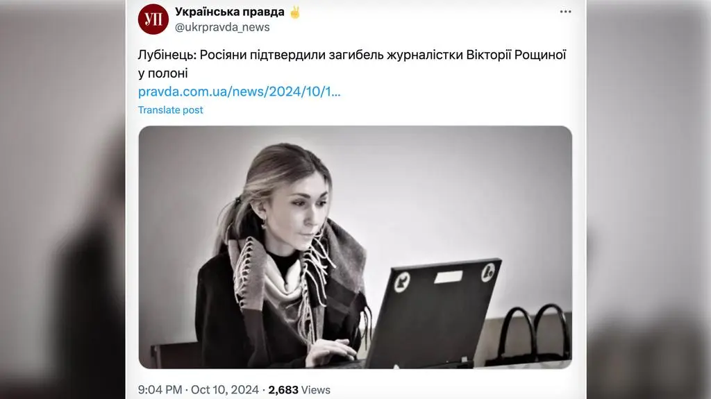 Nie żyje ukraińska dziennikarka Wiktoria Roszczyna (10.2024)