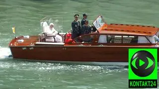 Papież Benedykt XVI w sobotę wieczorem do Wenecji, gdzie na Placu św. Marka spotkał się z władzami miasta i mieszkańcami. Szczególne zainteresowanie wzbudziło pływające papamobile, którym papież poruszał się po mieście na wodzie. Głowę Kościoła katolickiego w nietypowym pojeździe sfotografował Reporter 24 KLKOR.