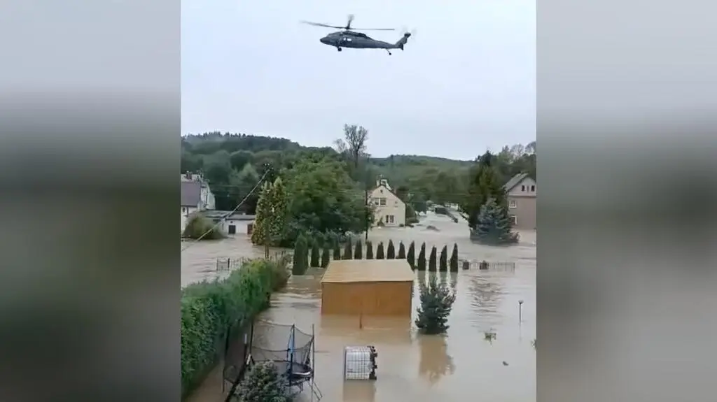 Policyjny Black Hawk pomaga w ewakuacji ludzi w Bodzanowie