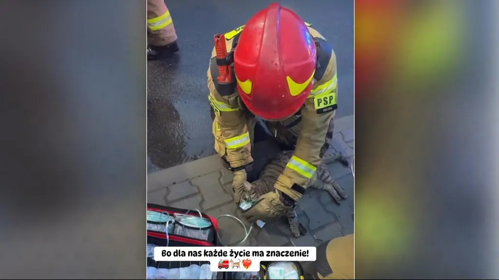 20.05 | Parter domu przy ulicy Wojska Polskiego w Będzinie spłonął niemal całkowicie, ogień nie oszczędził też pomieszczeń na piętrze. Mieszkańcy wydostali się o własnych siłach, ale pomocy strażaków potrzebowały znajdujące się w budynku zwierzęta. Jednemu z kotów strażacy podali tlen.