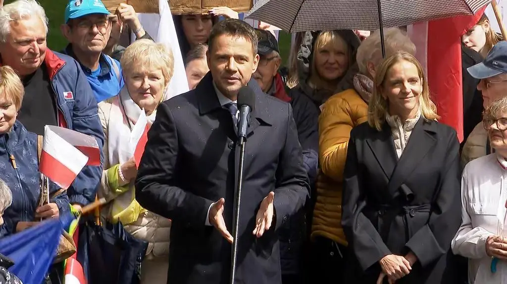 Pytania TVN24 do Nawrockiego. Krzyki tłumu, on nie odpowiada