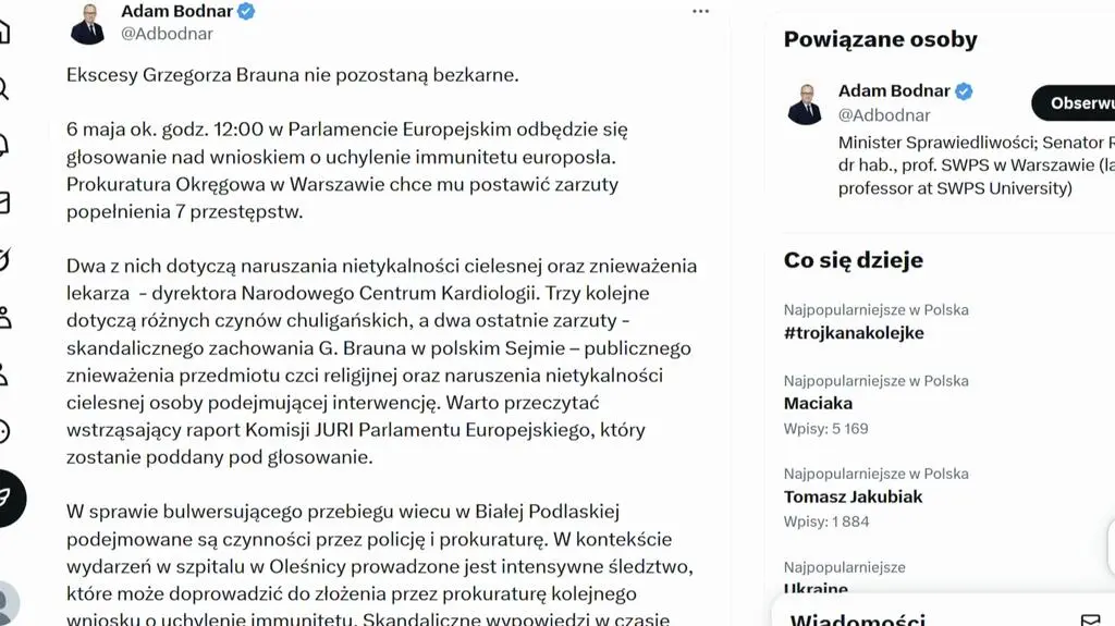 Wpis Adama Bodnara. "Ekscesy Grzegorza Brauna nie pozostaną bezkarne"