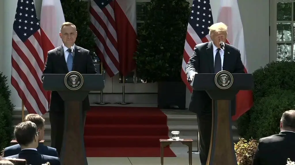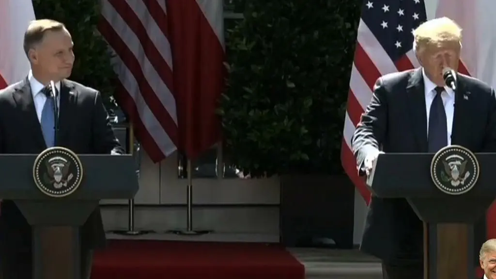 Na wspólnej konferencji prasowej z prezydentem Polski Trump mówił, że "wszyscy wiemy, jak wspaniałym i pięknym krajem jest Polska". - To zaszczyt, że jest tu z nami mój przyjaciel pan prezydent Duda z Polski, który zrobił naprawdę fantastyczną pracę - mówił Trump.