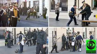 Na zdjęciach, jakie dostaliśmy na Kontakt 24, widać dokładnie moment ataku na grupę rekonstrukcyjną. Ubrany na czarno mężczyzna atakuje jednego z rekonstruktorów, szarpie się z nim, chce wyrwać mu karabin, zrzuca mu czapkę z głowy.