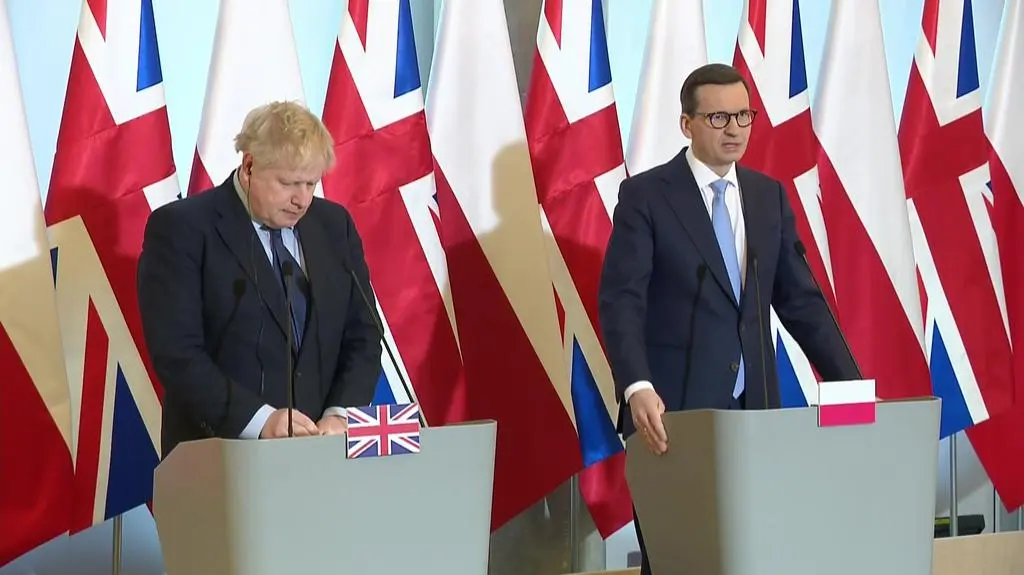 Premier Wielkiej Brytanii Boris Johnson przebywa z wizytą w Warszawie, gdzie spotkał się z premierem Matuszem Morawieckim. - Chcemy razem zamanifestować naszą solidarność z narodem ukraińskim - mówił szef polskiego rządu. Johnson podkreślił, że Polacy wykonują "niesamowitą pracę" w sprawie pomocy humanitarnej dla Ukraińców.