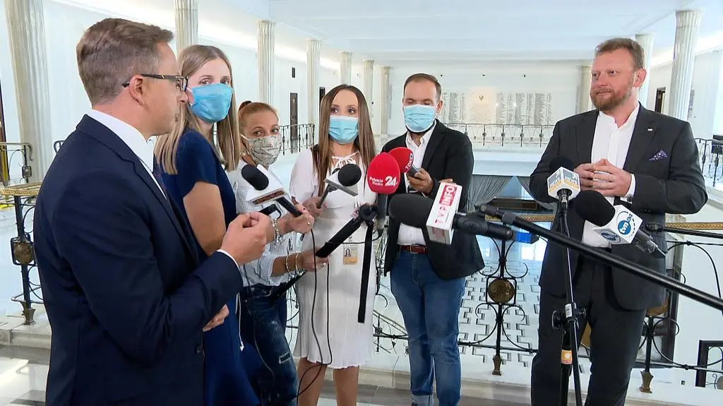 - To jest szalenie istotne i ważne, bo nie zdarzyło się jeszcze, żeby którykolwiek z polityków zapisywał sobie bezkarność. Mało tego, jeszcze przegłosowywał [to w Sejmie - przyp. red.]. Przypomnę, że cały klub Prawa i Sprawiedliwości przegłosował tę poprawkę dającą bezkarność, z której korzystali między innymi pan minister Szumowski i pan minister Cieszyński. Wchodząc dzisiaj do ministerstwa, zapytałem pana ministra Szumowskiego, czy choć raz spotka się z nami, bo byliśmy tu wielokrotnie, i odpowie na liczne pytania. Pan minister, który od godziny jest w Sejmie i odpowiada na wszystkie pytania, powiedział, że do Ministerstwa Zdrowia już się nie wybiera, że zakończył misję - mówił dalej Joński.