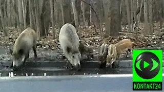 Niecodzienny widok mogli podziwiać kierowcy przemierzający Drogę Dębińską w Poznaniu. Dzika rodzina, zmęczona leśnymi spacerami, postanowiła się napić, a za wodopój posłużyła im kałuża znajdująca się na poboczu drogi. Sytuację obserwował Reporter 24 DawidBien, który zamieścił w naszym serwisie film z miejsca zdarzenia.