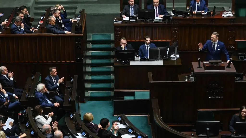 - Pan marszałek zdaje się chce stanąć w szranki z panem premierem, kto będzie bardziej antyprezydencki, kto będzie bardziej antyobywatelski. Panie marszałku, pan ostatnio powiedział: walka nie zakończy się tak długo, jak prezydentem będzie Nawrocki. Człowiek zbudowany z nacjonalistycznych obsesji - mówił. I dodał: - Prezydent Nawrocki jest zbudowany na idei wolnej, suwerennej, niepodległej, dumnej Polski. A pan, jest zbudowany na idei Polskiej Zjednoczonej Partii Robotniczej.