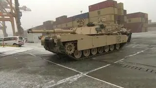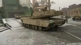 Wśród wyjeżdżających z kontenerów pojazdów są między innymi czołgi M1 Abrams. Podobne zostały w lipcu dostarczone do Żelaznej Dywizji, a w listopadzie polscy żołnierze strzelali z nich po raz pierwszy.