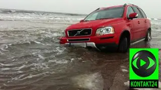 Jeżdżenie autem po plaży może być bardzo ryzykowne. Przekonał się o tym kierowca czerwonego Volvo, który w niedzielę po południu wjechał swoim samochodem do morza.