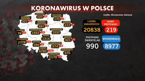 Ministerstwo Zdrowia: 219 nowych potwierdzonych przypadków zakażenia