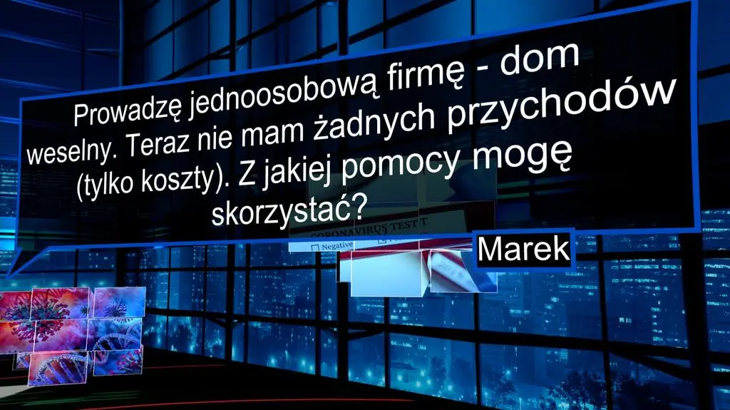 Prowadzę jednoosobową firmę - dom weselny. Teraz nie mam żadnych przychodów (tylko koszty). Z jakiej pomocy mogę skorzystać? Marek.