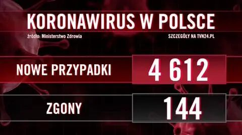 Resort poinformował w niedzielę o śmierci 144 osób zakażonych koronawirusem. Z powodu COVID-19 zmarło 35 osób, a z powodu współistnienia COVID-19 z innymi schorzeniami - 109 osób.