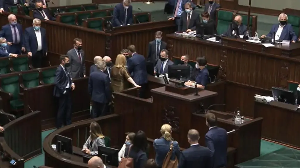 - Mam ważną sprawę formalną (...) CBA zatrzymuje ludzi w sprawie marszałka Sejmu - mówił Nitras, kiedy marszałek Sejmu wyłączyła mu mikrofon. - Zapraszam do mojego gabinetu - zwróciła się do niego Witek. - Nie jestem pani asystentem, żeby przychodzić do pani do gabinetu, ja mam prawo złożyć wniosek formalny - odparł poseł KO.