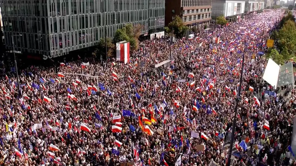 Około godziny 14:30 czoło marszu dotarło na rondo "Radosława". Tutaj Donald Tusk wygłosił kolejne przemówienie, wieńczące manifestację. - Chcę wam powiedzieć, że jest nas więcej niż milion - oświadczył na zakończenie demonstracji szef Platformy Obywatelskiej. Ślubował przed zgromadzonym tłumem "zakończenie wojny polsko-polskiej dzień po wyborach". - To jest trochę tak, wiecie, jak się pogoni agresora, to już nie ma powodu do wojny - dodał.