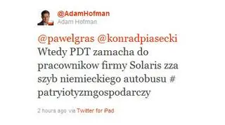 Hofman odparł: "Skoda, a jaki mamy polski samochód osobowy produkowany za rządów PDT? Bo wy mieliście do wyboru: Solaris, Autosan".