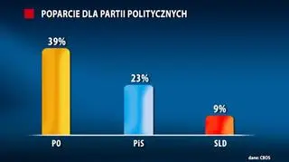 W porównaniu z wrześniem 4-punktowy spadek w sondażu CBOS zanotowały PO (z 43 proc.) oraz SLD (z 13 proc.). Liczba sympatyków PiS nie zmieniła się, a PSL wzrosła o 1 punkt procentowy (z 3 proc.)