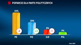W porównaniu do badania CBOS z początku lipca, poparcie dla rządzącej partii spadło o 2 punkty procentowe. Poparcie dla PiS jest z kolei wzrosło o 3 punkty procentowe.