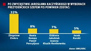 32 proc. respondentów stwierdziło, że po rezygnacji Jarosława Kaczyńskiego z funkcji prezesa PiS (po zwycięstwie w wyborach prezydenckich lub w związku z innymi przyczynami), szefem PiS powinien zostać europoseł Zbigniew Ziobro.