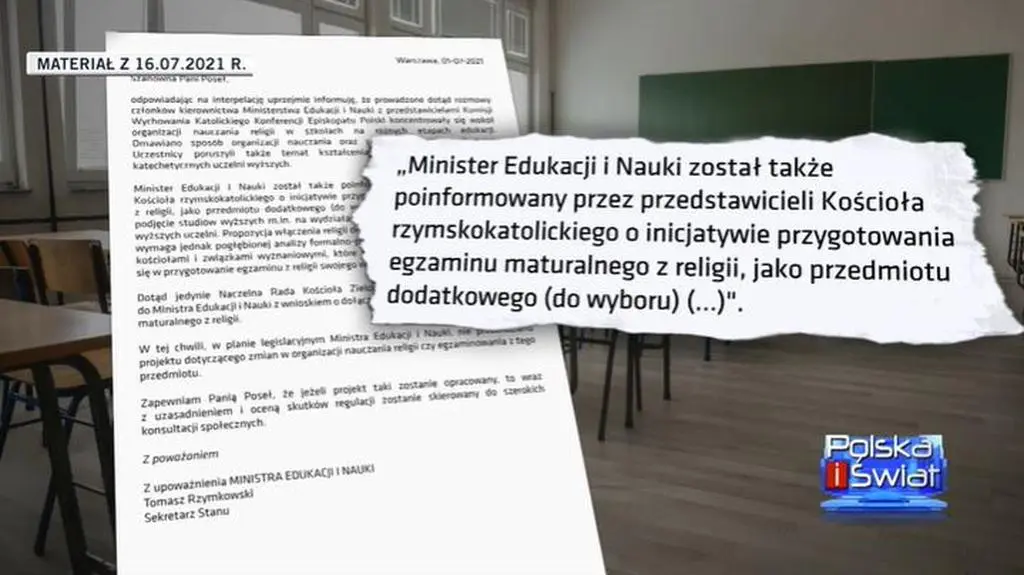 Wiosną tego roku w wywiadzie dla "Gazety Polskiej" minister edukacji i nauki Przemysław Czarnek zapowiedział, że chce zlikwidować możliwość wyboru w szkołach jednego z trzech wariantów: albo religia, albo etyka, albo nic. W tym, że część dzieci i młodzieży nie bierze udziału ani w lekcjach religii, ani etyki, minister widzi spore zagrożenie wychowawcze. - To "nic" stało się dość powszechne na przykład w dużych miastach. I właśnie to "nic" służy temu, by odbywały się podobne zbiegowiska, które kompletnie bezrefleksyjnie podchodzą do życia - nawiązywał do demonstracji zorganizowanych przez Strajk Kobiet. I dodawał: - Nauka albo religii, albo etyki będzie obligatoryjna, by do młodzieży docierał jakikolwiek przekaz o systemie wartości.