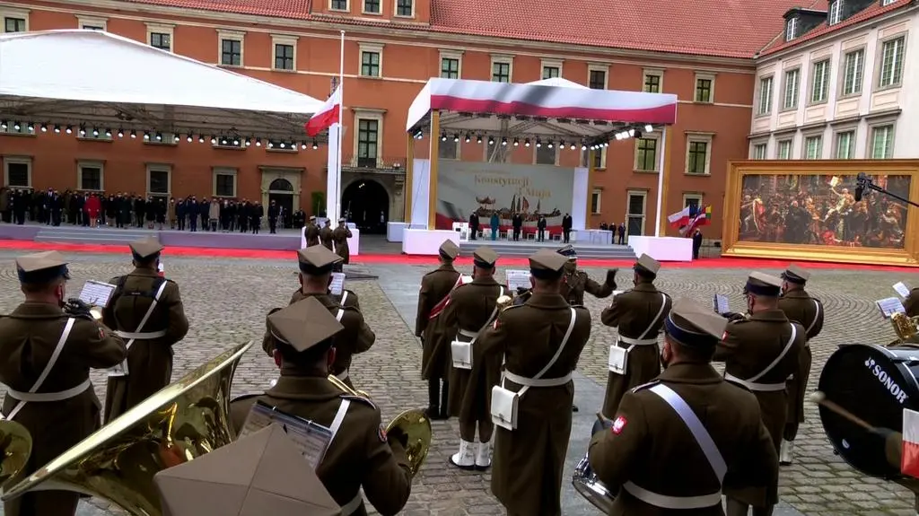 Podkreślił zarazem, że uniwersalne znaczenie Konstytucji 3 maja i związane z nią wartości należą do "skarbca doświadczeń historycznych i myśli państwowej narodów, których wysocy reprezentanci są dzisiaj z nami". - Dlatego stajemy dzisiaj razem, aby razem zaświadczyć o naszym przywiązaniu do tych wartości, o których była mowa przed chwilą. Wyciągając wnioski z historii naszych narodów stajemy ramię w ramię, aby wyrazić wolę zachowania ich niezawisłości, bezpieczeństwa i stabilnego rozwoju – mówił Andrzej Duda.