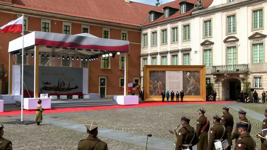 Duda powiedział, że 3 maja 1791 r. na Zamku Królewskim w Warszawie parlament połączonych unią Polski i Litwy uchwalił drugą na świecie, a pierwszą w Europie konstytucję, a określała ona nie tylko nowy ustrój, ale też aksjologiczne podstawy, na których miała opierać się nowoczesna Rzeczpospolita. Jak mówił, wśród tych fundamentalnych zasad wyróżniały się trzy wielkie idee: wola narodu, jako źródło legitymizacji władzy, rządy prawa oraz szacunek dla wielowiekowej tożsamości kulturowej narodu politycznego tworzonego przez ogół obywateli.