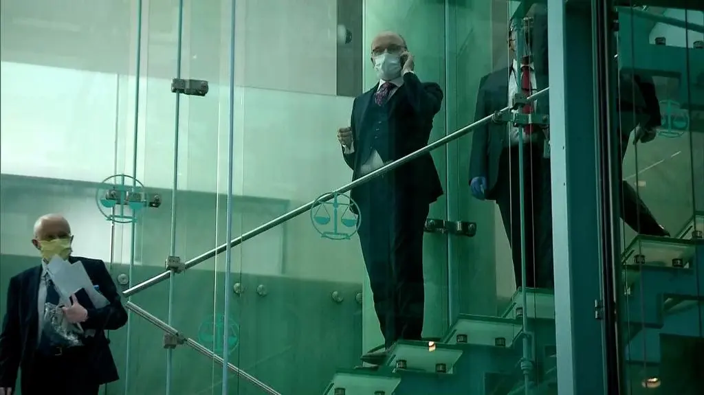 Kamera TVN24 w ciągu dnia uchwyciła pełniącego obowiązki pierwszego prezesa SN sędziego Kamila Zaradkiewicza wraz z innymi sędziami, udającego się na wyższą kondygnację budynku sądu.