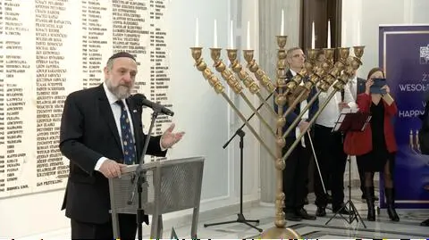 - Nie będziemy walczyć z mrokiem fizycznie, bo nie ma jak, nie ma po co - powiedział. - Mrok będziemy rozpraszać przez światło i mamy szczęście, że małe światło może rozpraszać dużo mroku. To jest ta ceremonia, zapalenie świec chanukowych, zapalenie światła, tolerancja, wzajemny szacunek i wolność religii w pełnym tego słowa znaczeniu - mówił.