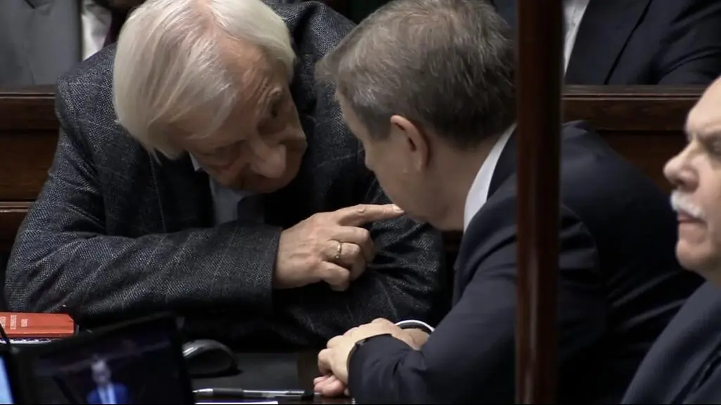 W trakcie exposé, krótko przed jego zakończeniem, Ryszard Terlecki - po krótkiej wymianie zdań z Jarosławem Kaczyńskim - podszedł do stanowiska marszałka Sejmu Szymona Hołowni, wymieniając kilka zdań ze współpracownikiem marszałka z Sekretariatu Posiedzeń Sejmu, który później rozmawiał z Hołownią.