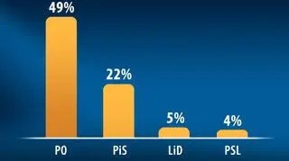 Poparcie dla PO wzrosło w stosunku do sondażu z lutego o 1 punkt proc. Notowania PiS poprawiły się w porównaniu do poprzedniego badania o 3 punkty proc. Dwie pozostałe partie znalazły się poniżej progu, bo o 4 punkty proc. zmniejszyło się w marcu poparcie dla LiD (które jaku koalicja musi przekroczyć 8 proc. by dostać się do Sejmu), a o 1 punkt proc. spadły notowania PSL.