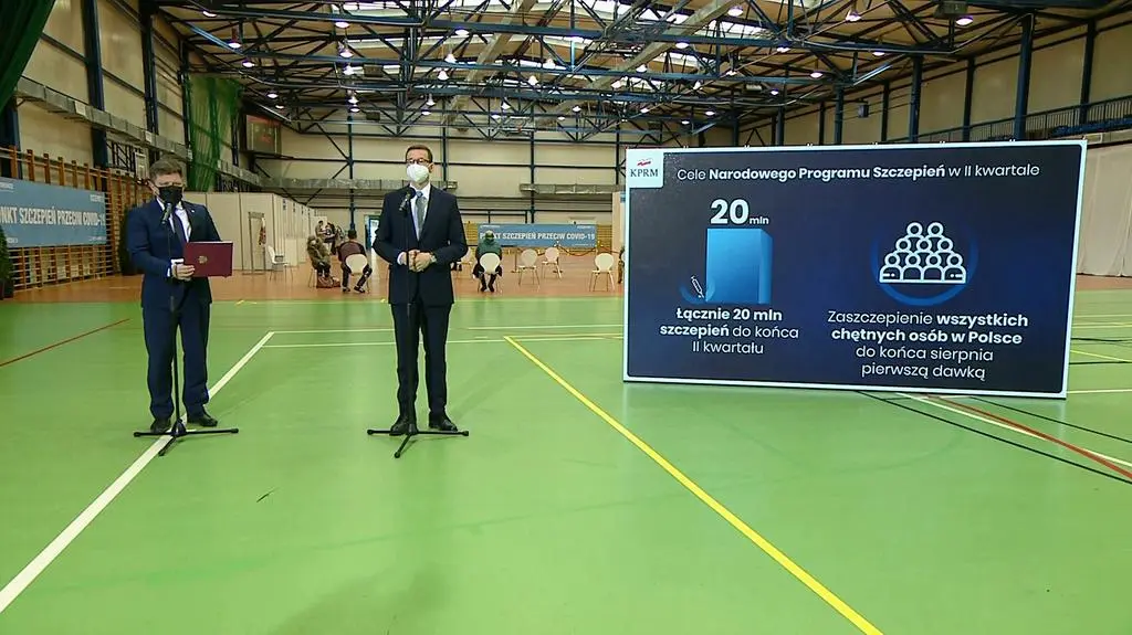 Morawiecki ocenił, że proces szczepień "działa w Polsce dobrze". - Ale chcemy i tak zwiększyć jeszcze zakres jego powszechności. Sale sportowe takie jak ta, ośrodki szkolne, remizy strażackie i wiele innych ośrodków w każdym powiecie, jak najbliżej każdego obywatela. Musi być dostępność szczepień – mówił premier w Skierniewicach.