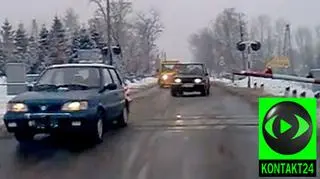 "Legionowskim (i nie tylko) kierowcom zupełnie nie przeszkadzają opuszczone zapory kolejowe, ani sygnalizacja na przejeździe" - napisał do redakcji Kontaktu 24 internauta Darek. Na dowód przesłał film, na którym widać auta wykonujące slalom pomiędzy szlabanami na przejeździe kolejowym w Legionowie.