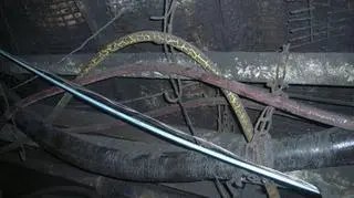 Drugie ze zdjęć pokazuje fragment ściany, na której prowadzone było wydobycie. Widać tak zwaną obudowę zmechanizowaną - urządzenie zapewniające stabilność wyrobiska. Jeden z górników pracujących w tym miejscu zawiesił na obudowie swój indywidualny metanomierz i tzw. SR - czyli aparat ucieczkowy - umożliwiający oddychanie w razie wypadku. Nie wiadomo, czy górnik przeżył. W miejscu, gdzie zostało wykonane zdjęcie zginęło kilku górników. Przeżyło tylko dwóch.