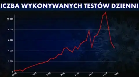 O największej dobowej liczbie testów od początku epidemii Ministerstwo Zdrowia poinformowało 11 kwietnia - było to 11,2 tysiąca testów. Od tego dnia liczba ta zaczęła się stopniowo zmniejszać. Spadki odnotowano trzy dni z rzędu.