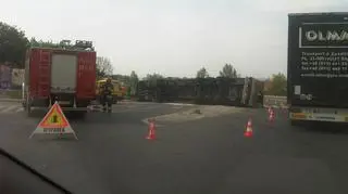 Zderzenia i tak nie udało się uniknąć, ale nikomu nic się nie stało. Ruch na skrzyżowaniu odbywa się wahadłowo. Policjanci czekają na ciężki sprzęt, który usunie pojazd z jezdni. Po wywrotce część worków z mąką, jakie przewoził tir, pękła i wypadła na jezdnię.