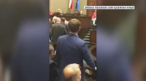- Wszystkim nam zależy, by Sejm pracował normalnie, by wolna demokracja istniała w naszym kraju, ale to, z czym mieliśmy tutaj do czynienia przed chwilą, to czynna napaść pana posła Tarczyńskiego na jedną z naszych posłanek, Kingę Gajewską. Pierwszy raz w Sejmie doszło do napaści fizycznej na posła, to są obrazy, których nie chcemy widzieć w polskim parlamencie, to są obrazy rodem ze wschodu - powiedział Tomczyk podczas debaty nad projektem ustawy o Sądzie Najwyższym.- Mówimy "nie" autorytarnej Polsce, mówimy "nie" agresji, mówimy "nie" nienawiści, dzisiaj jest czas, by się określić - zaznaczył Tomczyk.Złożył wniosek o odroczenie obrad na siedem dni, do czasu wyjaśnienia "incydentu".