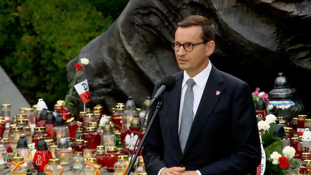 Premier mówił, że "dziś także stajemy wobec pytania, czy te straszne ofiary, które zostały poniesione, mogą być po prostu zamkniętą kartą historii". - Ja odpowiadam na to pytanie: nie, nie mogą. Nie mogą, bo historia i tamte karty zapisywane przez Niemców mają swój konkretny wymiar. Warszawa miała być kompletnie zniszczona, zmazana z mapy i została obrócona w ruinę - dodał.