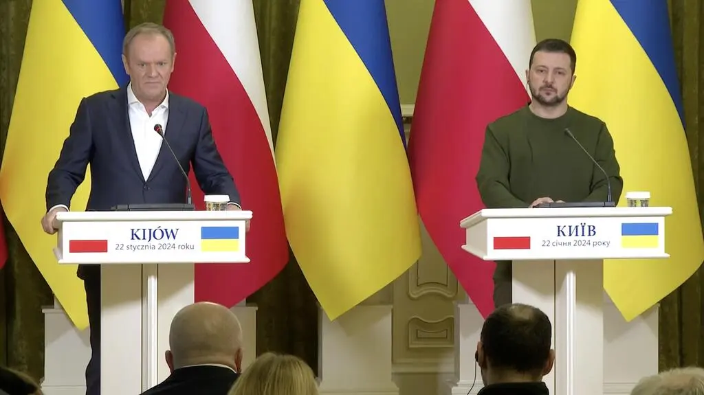Prezydent Ukrainy zwrócił uwagę, że jego kraj jest celem pierwszej zagranicznej wizyty nowego premiera Polski. - Cieszę się bardzo, że spotykamy się w Dniu Jedności Ukrainy. Ma to znaczenie historyczne, ale również polityczne w kontekście jedności Ukrainy. Chodzi tutaj o naszą obronność, o naszą walkę z inwazją Rosji - mówił Zełenski. - Jesteśmy razem - oświadczył.