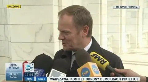 Przewodniczący Rady Europejskiej przyznał, że w czasie pobytu w USA wielu zagranicznych polityków pytało go o wydarzenia bieżące w Polsce. - Miałem kilka takich spotkań i rozmów, nie tylko z Amerykanami. Nie będę komentował mojej krótkiej rozmowy z Barackiem Obamą, bo zobowiązaliśmy się obaj do dyskrecji, ale oczywiście pytał o moją ocenę sytuacji w Europie i Polsce - powiedział.